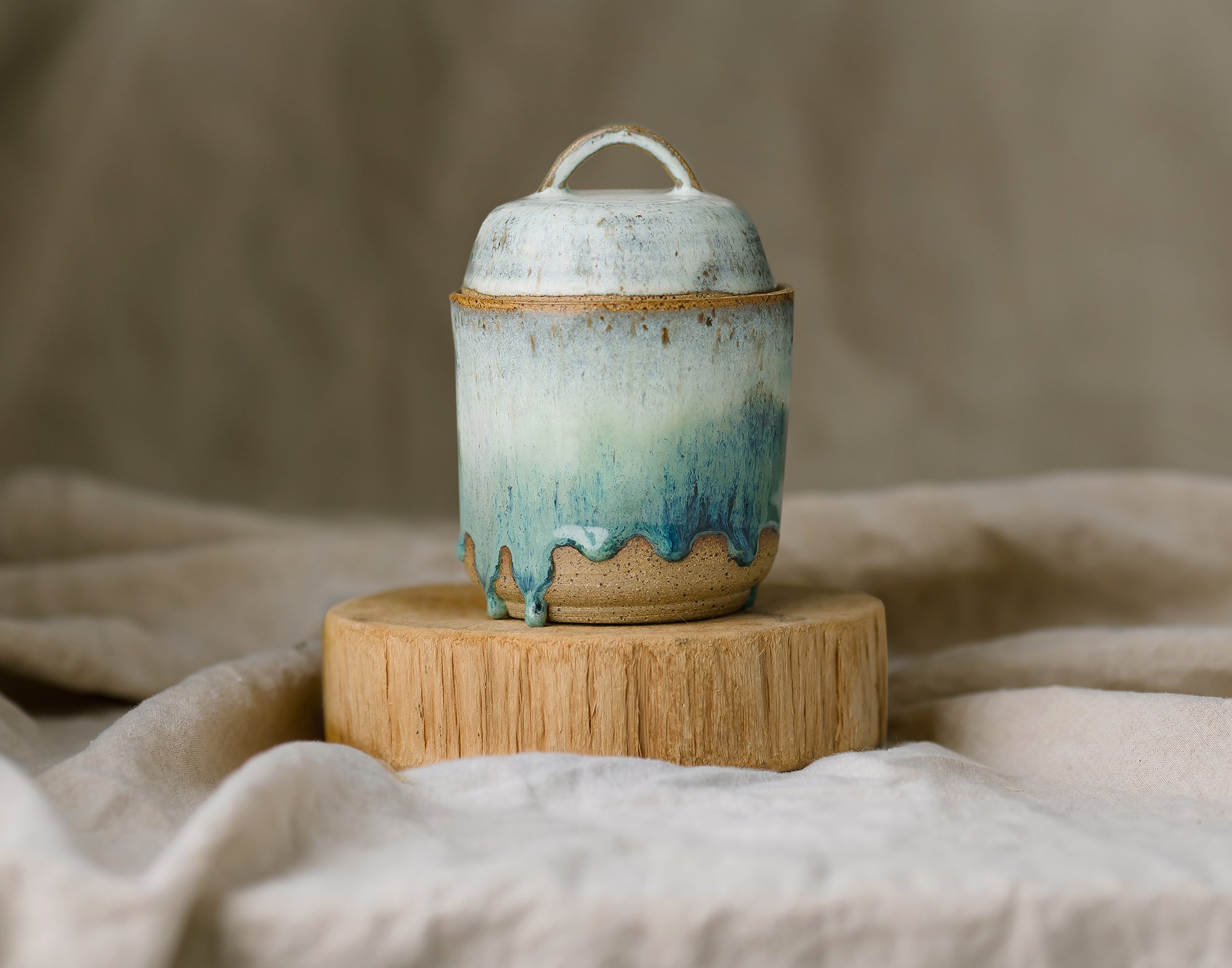 The perfect little handmade, wheel-thrown jar to store salt or spices (or anything else you'd like)! Measures 5.5" tall x 3.5" wide